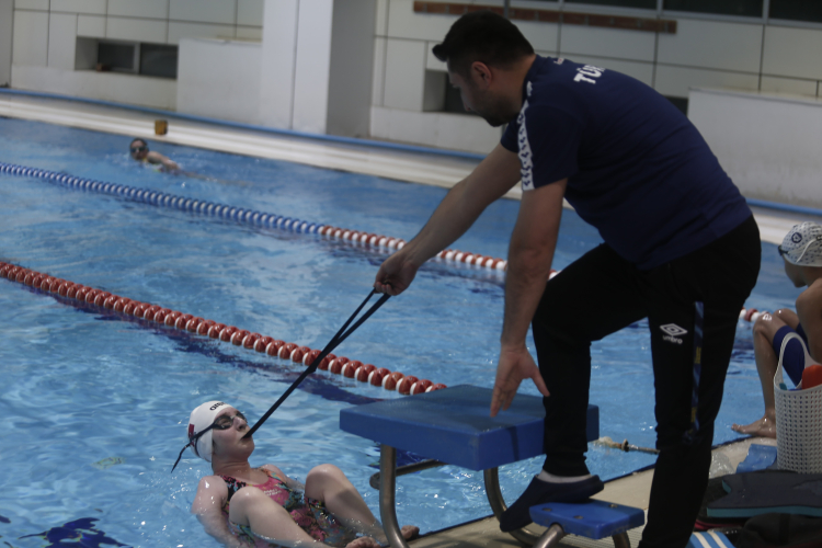 Fizik tedavi için doktorları tarafından yüzme sporuna yönlendirildiğini kaydeden milli yüzücü Esra Yüce, "Bu sporu yapmaya doktorlarım yönlendirdi. Fizik tedavi için yüzmeye başladım. Yüzme ile birlikte hayatım değişti. Sırtüstü yarışlarda tutunamadığım için ilk başlarda ayaklarımdan tutunuyordum. Daha sonra İlyas hocam bana bir aparat tasarladı. Artık dişlerimle ona tutunarak çıkış yapıyorum. Şu anda İstanbul'daki Avrupa Gençlik Oyunları'na hazırlanıyorum" dedi. APARAT SAYESİNDE STARTTA HAREKETSİZ KALABİLİYOR