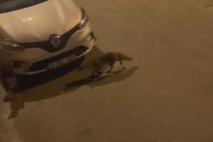 Bursa'nın merkez Nilüfer ilçesi Beşevler Mahallesi’nde kayda alınan görüntüler, izleyenleri şaşkına çevirdi. Aç kalan tilki, şehir merkezinde sokak aralarında gezinmeye başlayınca görenler gözlerine inanamadı. En ilginci ise, tilkinin karşılaştığı ne kedi, ne köpek ne de tavuk oldu. Başı boş sokakta gezen hindiyi gören tilki, yavaştan sokulduğu hindiden beklemediği tepkiyi aldı. Birkaç deneme yapan tilki, başarılı olamayacağını anlaşınca sokaktan uzaklaştı.