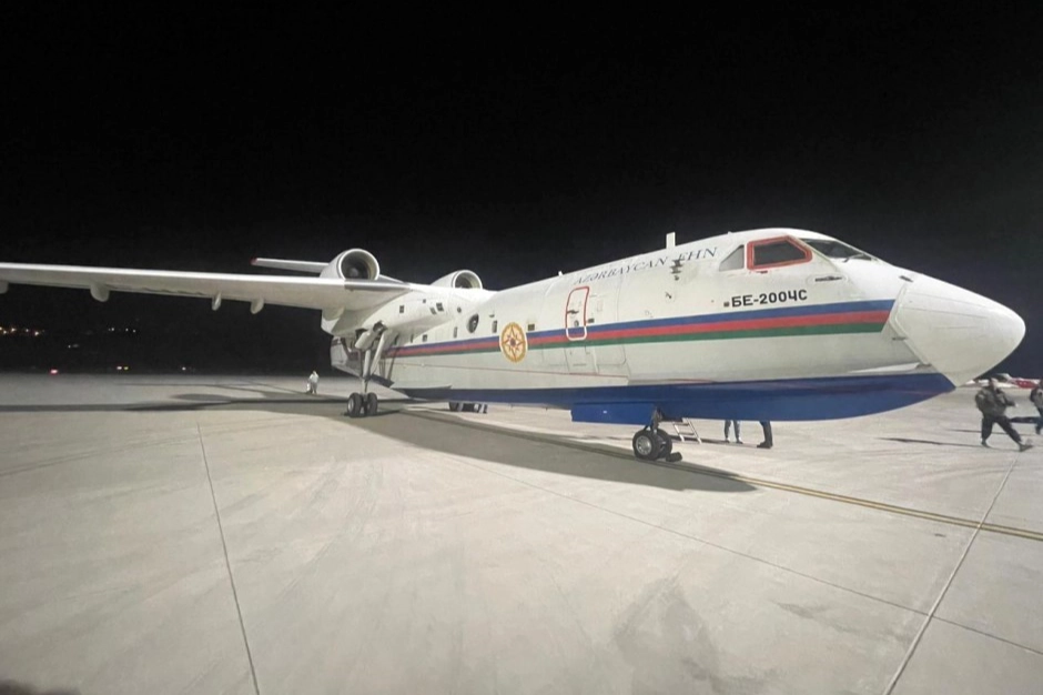 Azerbaycan, Türkiye’de devam eden orman yangınlarının söndürülmesi için harekete geçti. Türkiye’nin yangınla mücadelesine destek olmak amacıyla dün gece gönderilen BE-200ÇS amfibi uçağı İzmir Adnan Menderes Havalimanı’na iniş yaptı.