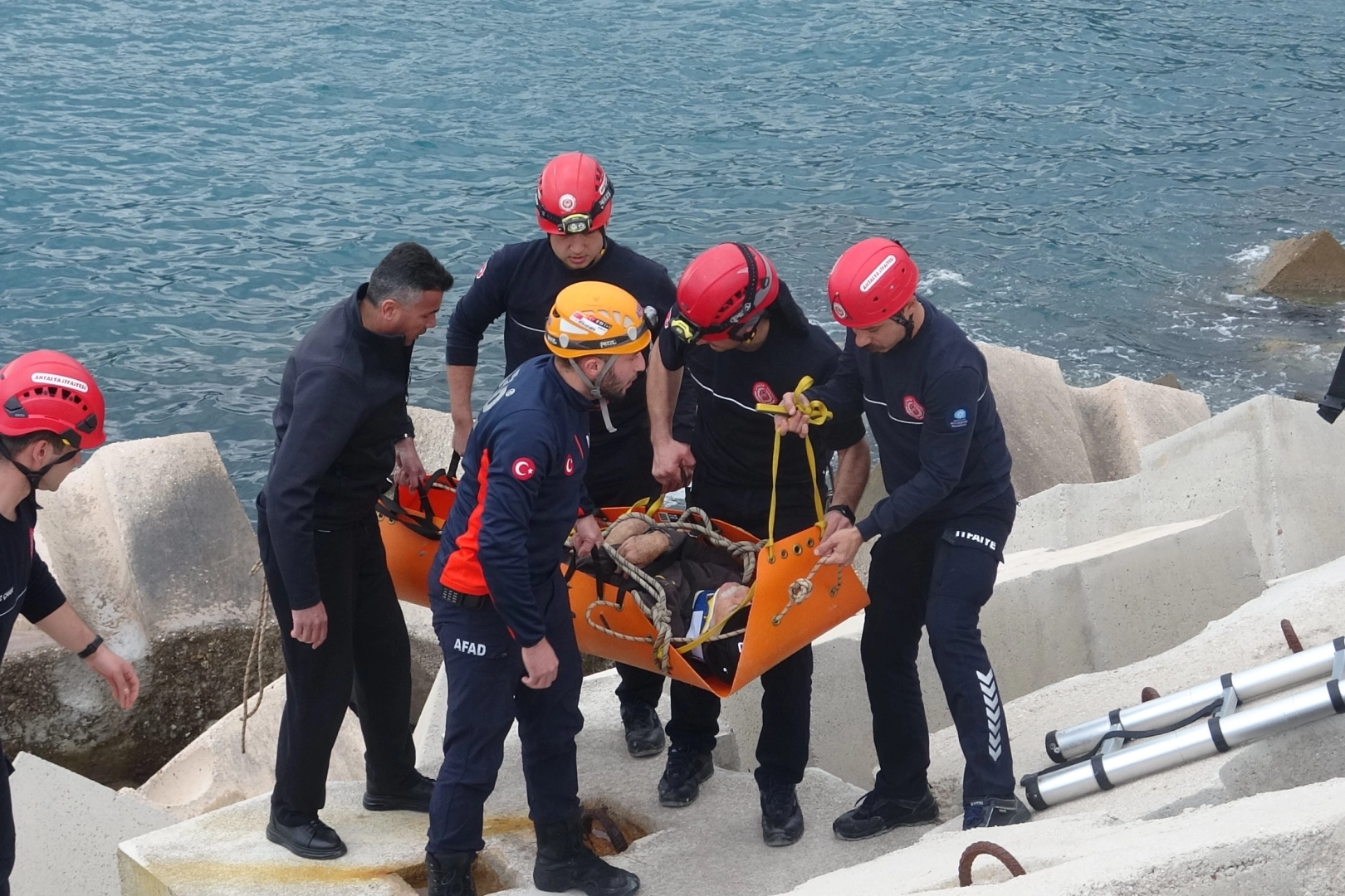 Antalya'da balık tutmak için gittiği mendirekte ayağı kayarak beton blokların üzerinden düşen ve yaralanarak mahsur kalan yaşlı adam AFAD ve itfaiye ekiplerinin 1 saatlik operasyonuyla kurtarıldı.