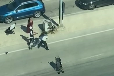 Tekme tokat kavga sırasında bebek arabalarından biri orta refüjden yola inip ilerlemeye başladı. Üzeri açılan bebek arabasında bebeğin olmadığı dilencilerin istismar yoluyla vatandaşları nasıl kandırdıkları bir kez daha gözler önüne serildi. Kavgaya tutuşan dilencileri yoldan geçen vatandaşlar güçlükle ayırabildi. Bir vatandaşın kaydettiği görüntüler ile ilgili polis ekipleri tahkikat başlattı.