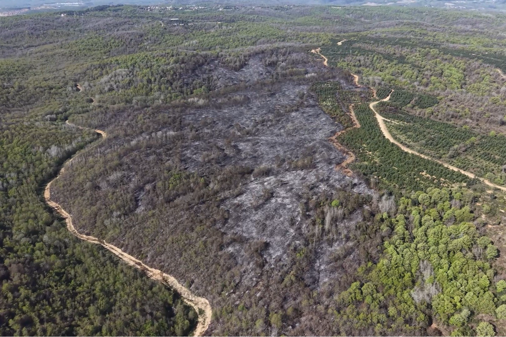 Beykoz'daki orman yangınının bilançosu günün ilk ışıklarıyla netleşti. Ekiplerin yaklaşık 9 saat süren yoğun müdahalesiyle gece saatlerinde kontrol altına alınan yangında küle dönen ormanlık alan havadan görüntülendi.