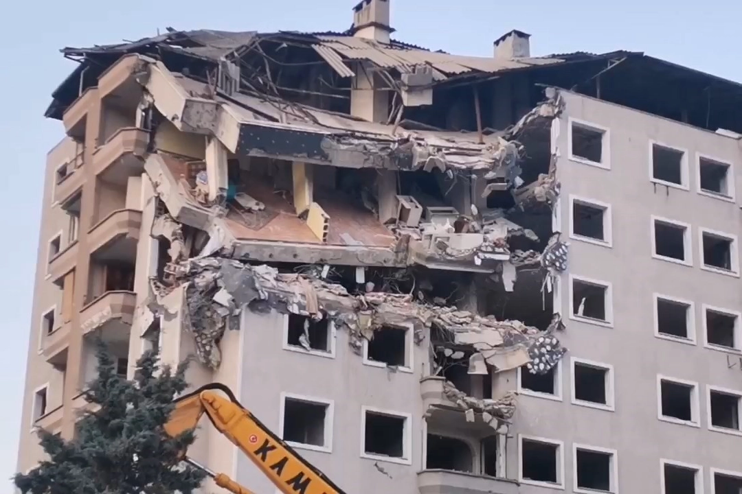 İş merkezi ve konut olarak kullanılan bina, iş makinesinin tek darbesiyle yerle bir olduğu anlar cep telefonu kamerasına yansıdı. Bursa'nın Mudanya ilçesi Ömerbey Mahallesi'nde Bursa Asfaltı Caddesi'nde yer alan 32 yıldır iş merkezi ve konut olarak kullanılan bina kentsel dönüşüm çerçevesinde yıkımı gerçekleşti. Lokanta, çay ocakları, STK'lar, sigorta acenteleri, avukat büroları ve beyaz eşya bayilikleri gibi çeşitli iş yerlerinin bulunduğu yaklaşık 100 dükkan yer alan bina iş makineleri marifetiyle yıkıldı. Birçok esnafın ve Mudanyalı vatandaşın uğrak yeri olan iş merkezinin yanı sıra, 40 daire ve bir mescidi içeren 11 katlı apartmanın da yıkımı gerçekleşti. İş makinesinin tek kepçe darbesiyle binayı yerle bir etmesi ise dikkat çekti. O anlar cep telefonu kamerasına yansıdı.