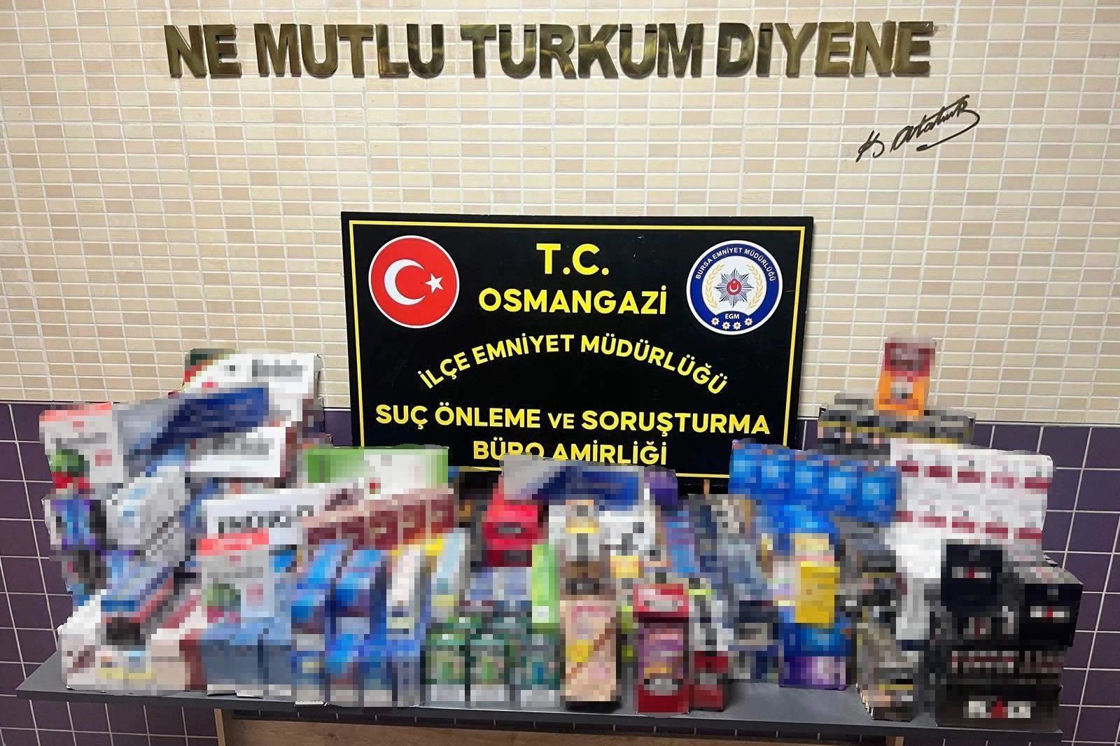Edinilen bilgilere göre, Osmangazi İlçe Emniyet Müdürlüğü Suç Önleme ve Soruşturma Büro Amirliği ekipleri, İ.D. ve G.D. isimli şahısların kaçak tütün mamulleri bulundurduğu ve sattığını tespit etti. Bunun üzerine Veysel Karani Mahallesi’nde bulunan iş yerine operasyon düzenlendi. Yapılan aramalarda, 2 bin adet gümrük kaçağı sigara ile 11 adet elektronik sigara ele geçirildi. Olayla ilgili şüpheli şahıslar hakkında yasal işlem başlatıldığı öğrenildi.