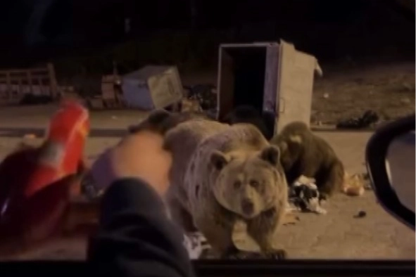 Milli Park yetkilileri de hayvanlara her gün yiyecek bırakıp karınlarını doyuruyor. Ancak bazı vatandaşlar ayı ailesinin yanına gelip yiyecek verirken tehlikeli anlar yaşıyor. Sucuk ziyafeti çektiği anne ayının gazabına uğrayan bir maceracı o anları kayda aldı. Ayının arabaya saldırdığı anlar yürekleri ağıza getirdi.
