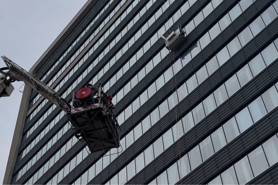 Bursa'da özel bir hastanenin dış cephe camlarını silen 2 işçi, asansör sistemi arıza yapınca 52 metre yükseklikte mahsur kaldı. İtfaiye ekiplerinin yaklaşık 2 saatlik çalışmasıyla işçiler kurtarıldı. Alınan bilgiye göre, Nilüfer ilçesinde özel bir hastanenin camlarını silen iki personel asansör arıza yapınca mahsur kaldı. Yaklaşık 10. katta mahsur kalan personel için bölgeye, 52 metrelik merdivenli itfaiye aracının yanısıra AFAD, 112 ve polis ekipleri sevk edildi. Polisler caddeyi çift yönlü trafiğe kapatınca itfaiye ekipleri kurtarma çalışmalarını başlattı. Havanın rüzgarlı olması çalışmaları zaman zaman güçleştirirken, ekiplerin uzun uğraşları sonucu iki işçi kurtarıldı.