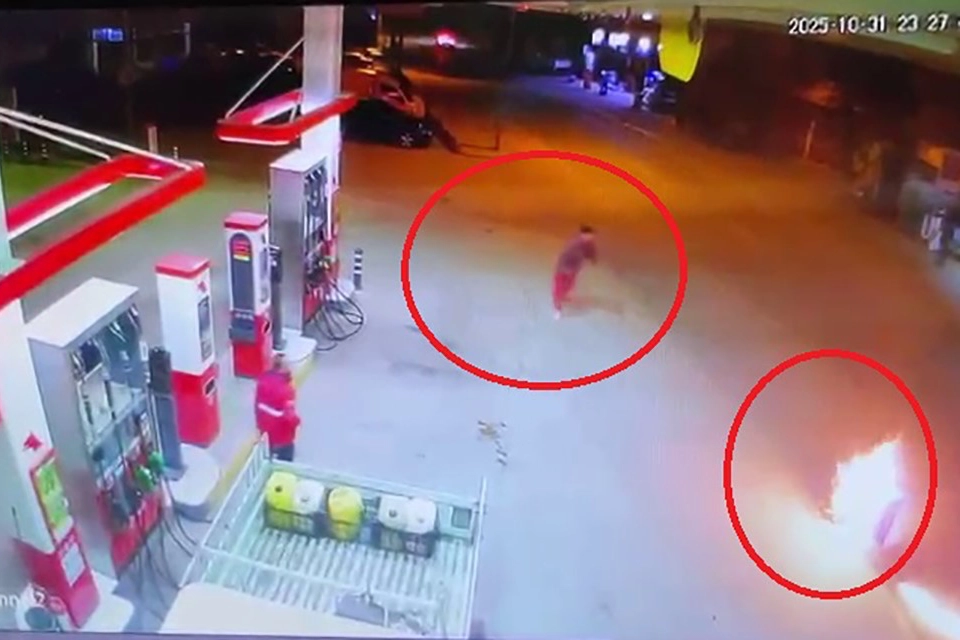 Korku dolu anlar, akaryakıt istasyonunun güvenlik kamerasına saniye saniye yansıdı.