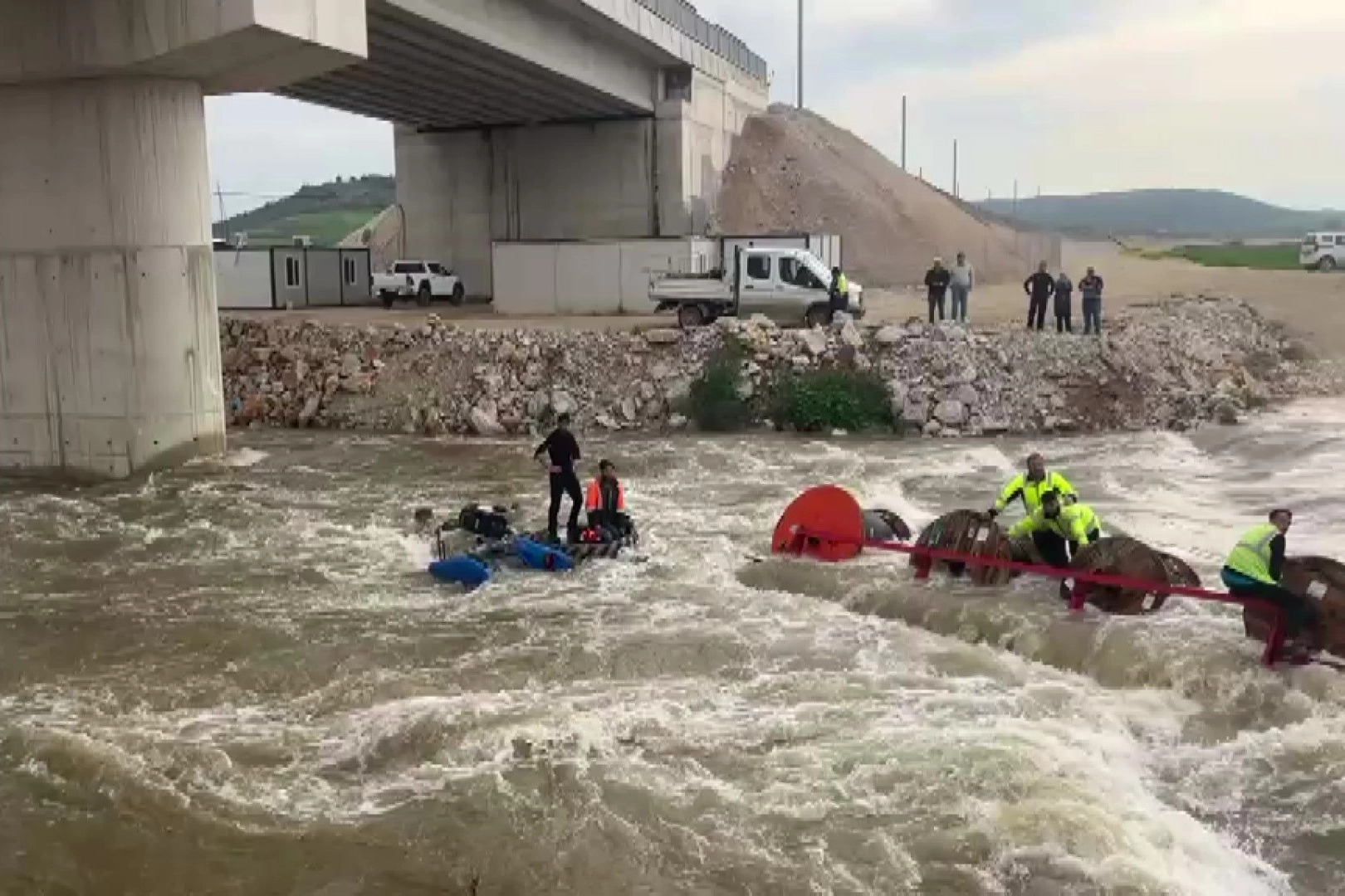 Bursa’nın Yenişehir ilçesinde Kocasu Deresi’ni traktörle geçmeye çalışırken aracın devrilmesi sonucu suyun ortasında mahsur kalan 10 işçi, bölgeye sevk edilen ekiplerin vinçli müdahalesiyle sağ salim kurtarıldı.