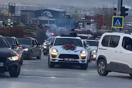 Bursa'da trafikte tehlike saçan düğün konvoyundaki araç sürücülerine toplam 660 bin TL idari para cezası uygulandı. Edinilen bilgiye göre, İl Emniyet Müdürlüğü ekipleri, Yıldırım ilçesi Yiğitler Mahallesi Yıldırım Beyazıt Bulvarı üzerindeki trafik güvenliğini tehlikeye atarak ilerleyen düğün konvoyunun sosyal medyadaki görüntüleri üzerine harekete geçti. Trafik Denetleme Şube Müdürlüğü ekiplerince yapılan incelemelerde araçlar tek tek tespit edilip sürücülere 2918 sayılı Karayolları Trafik Kanunu'nun ilgili maddeleri gereğince toplam 660 bin TL idari para cezası kesildi.