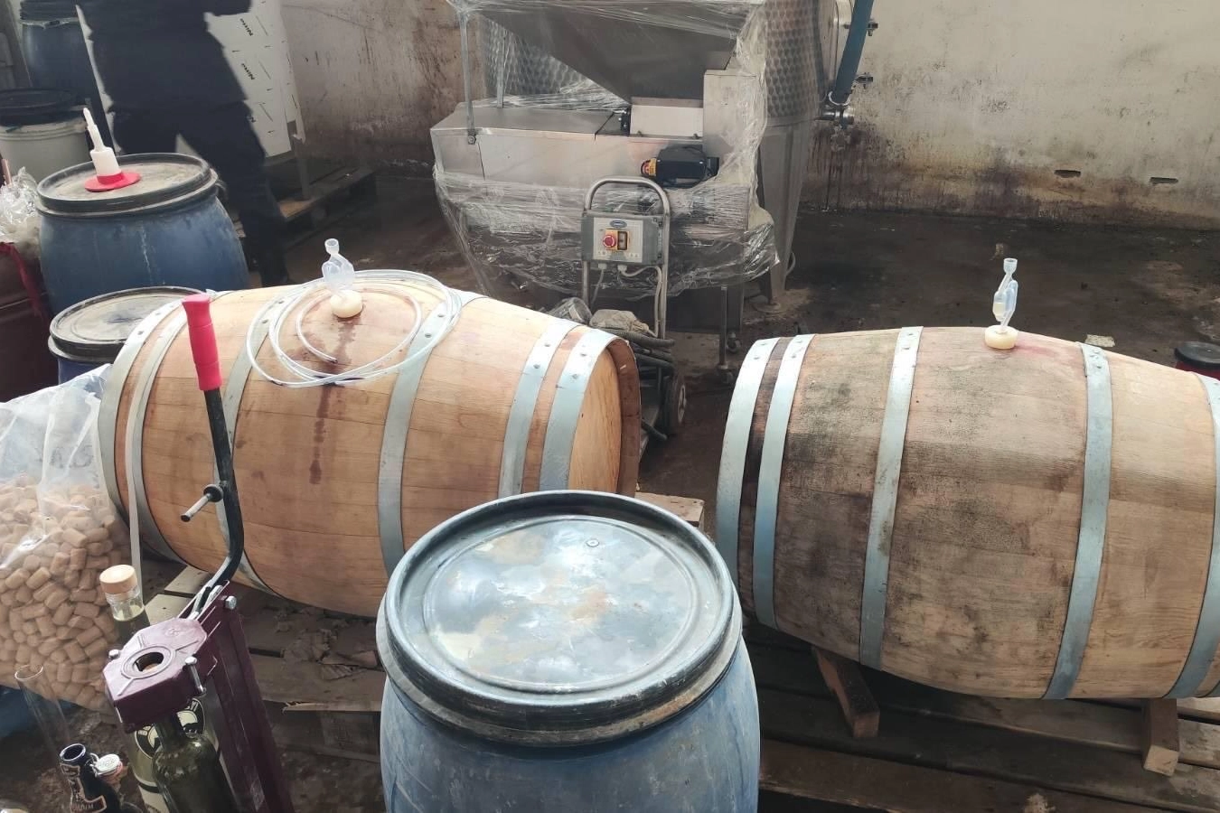 Yapılan aramada 800 litre el yapımı şarap, 5 litre şişelenmiş ve bandrolsüz şarap, 500 kilogram şarap yapımında kullanılan üzüm posası ile 500 gram alkol aroma kiti, 1 adet üzüm sıkma makinesi, 1 adet üzüm eleme makinesi, 1 adet alkol şişeleme makinesi, 2 adet damıtma ve bekletme kazanı, 5 adet alkolmetre, 750 adet boş şarap şişesi, bin adet şarap tıpası ve üzerinde herhangi bir ibare bulunmayan 50 adet alkol şişesi ile 3 kılıç ele geçirildi. Ele geçirilen malzemelere el konulurken, olayla ilgili 1 şüpheli hakkında adli işlem başlatıldı.