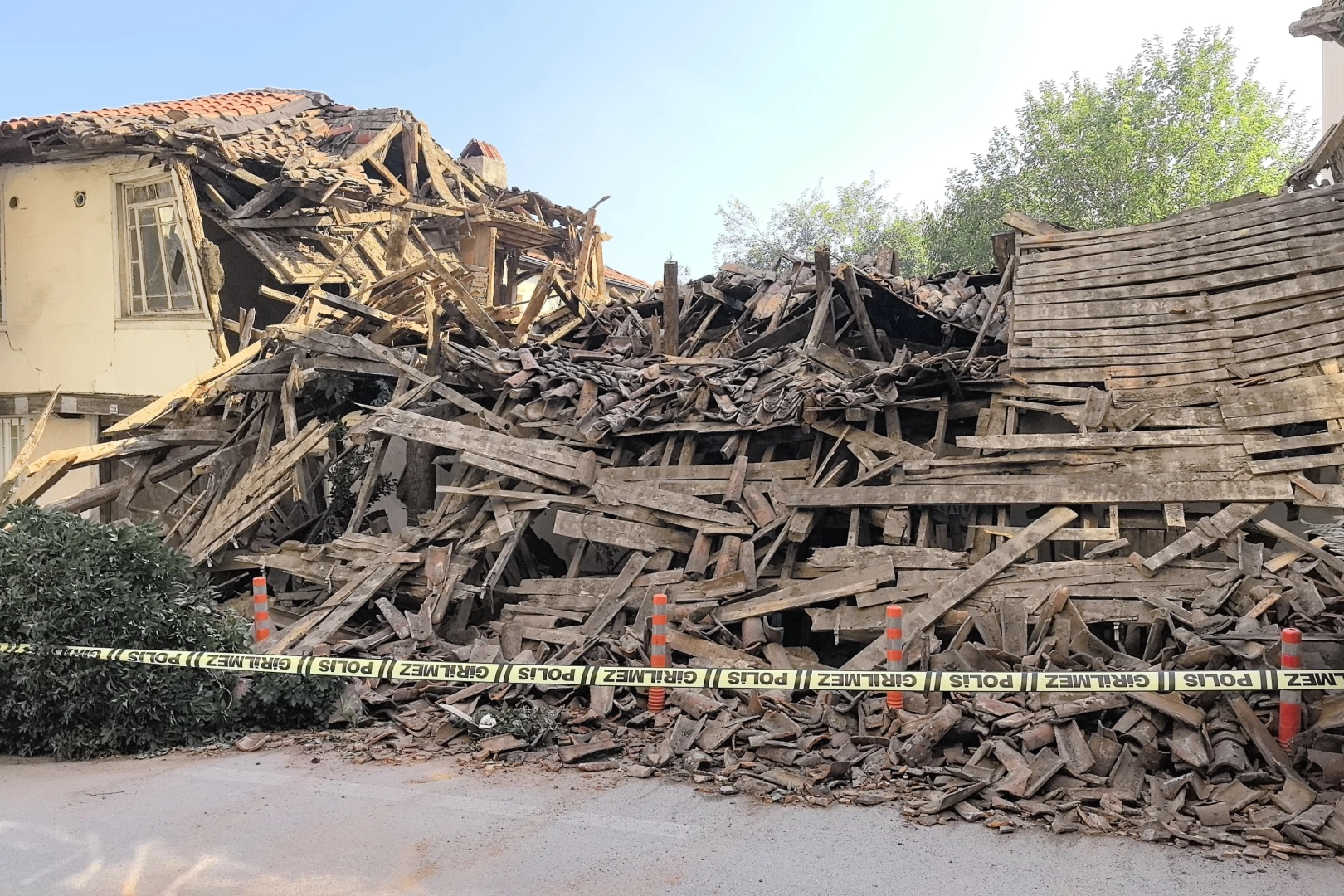 Bursa'nın İnegöl ilçesinde metruk bina gürültüyle çöktü. Sabahın erken saatlerinde çökmesi muhtemel faciayı önledi.
