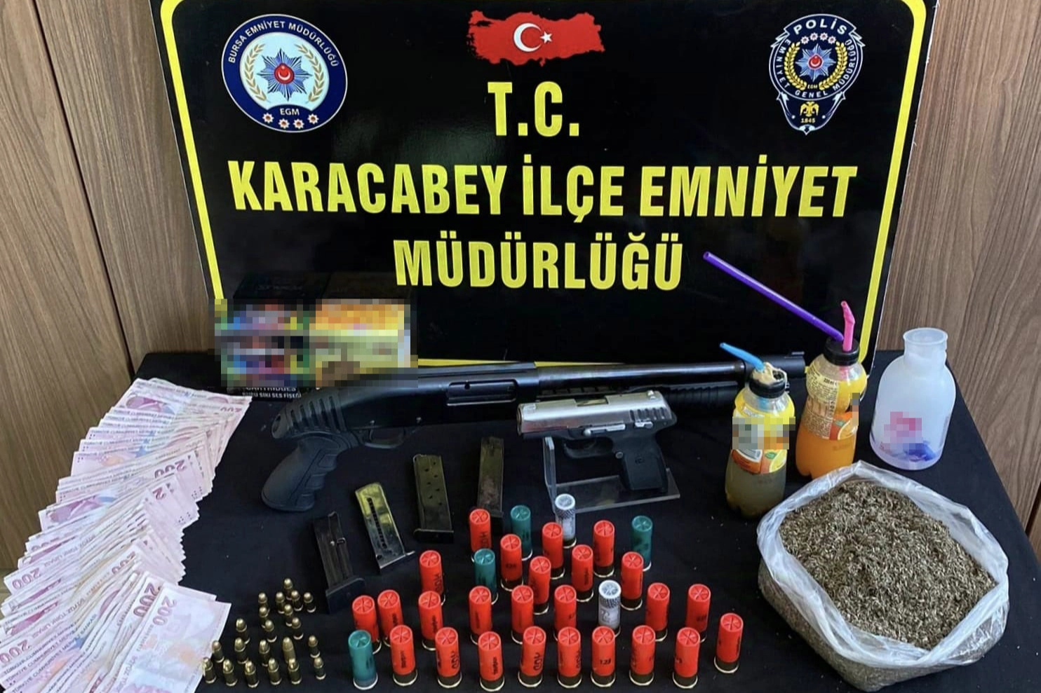 Karacabey İlçe Emniyet Müdürlüğü Asayiş Büro Amirliği ekipleri, ilçede uyuşturucu madde satan ve kullanan şahıslara yönelik operasyonlar düzenledi. Polis ekipleri bu kapsamda uyuşturucu ticareti yaptığı belirlenen Tuncay G. (48)'yi takibe aldı. Polis ekiplerinin yaptığı teknik ve fizikî takip sonucunda yakalanan şüpheli Tuncay G.'nin Hamidiye Mahallesi Panayır Caddesi'nde bulunan ikametgahında arama yapıldı. Aramada 427 gram bonzai, 3 adet boş tabanca şarjörü, 19 adet fişek, 1 adet pompalı tüfek, 31 adet pompalı tüfeğe ait dolu fişek, 1 adet uyuşturucu madde yapımında kullanılan aseton, 2 adet uyuşturucu içiminde kullanılan düzenek ve 10 bin 740 TL para ele geçirildi. Ayrıca Tuncay G.'ye ait arabada yapılan aramada da 1 adet tabanca ve 7 adet dolu fişeğe el konuldu. Uyuşturucu madde bulundurmak ve ticaretini yapmak suçundan gözaltına alınan Tuncay G. ifadesinin ardından çıkarıldığı mahkemece tutuklanarak Bursa Kapalı Cezaevi'ne gönderildi.