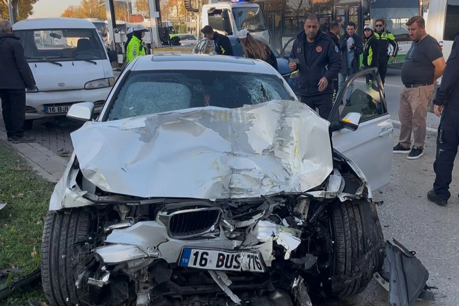 Olay, merkez Nilüfer ilçesi Karaman Mahallesi Mudanya Yolu üzerinde meydana geldi. Edinilen bilgiye göre, trafikte hız yapan ve birbirleriyle yarıştıkları öne sürülen iki otomobil sürücüsü, direksiyon hakimiyetini kaybetti. Kontrolden çıkan araçlar önce seyir halindeki belediye otobüsüne çarptı, çarpmanın etkisiyle savrulan araçlar kaldırıma çıkarak durabildi.