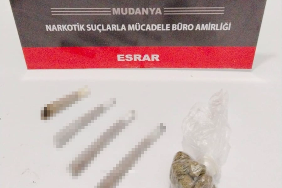 Mudanya Narkotik Suçlarla Mücadele Büro Amirliği ekipleri, Halitpaşa Mahallesi Yumurtatepe Caddesi üzerinde şüphelendikleri A.S.B. isimli şahsı takip ettiler. Takip sonucu şüpheli şahsın üzerinden 5 parça halinde kullanıma ve satışa hazır 7.81 gram esrar ele geçirildi. Yakalanan A.S.B.'nin işlemleri Mudanya Narkotik Bürosunda devam ediyor.