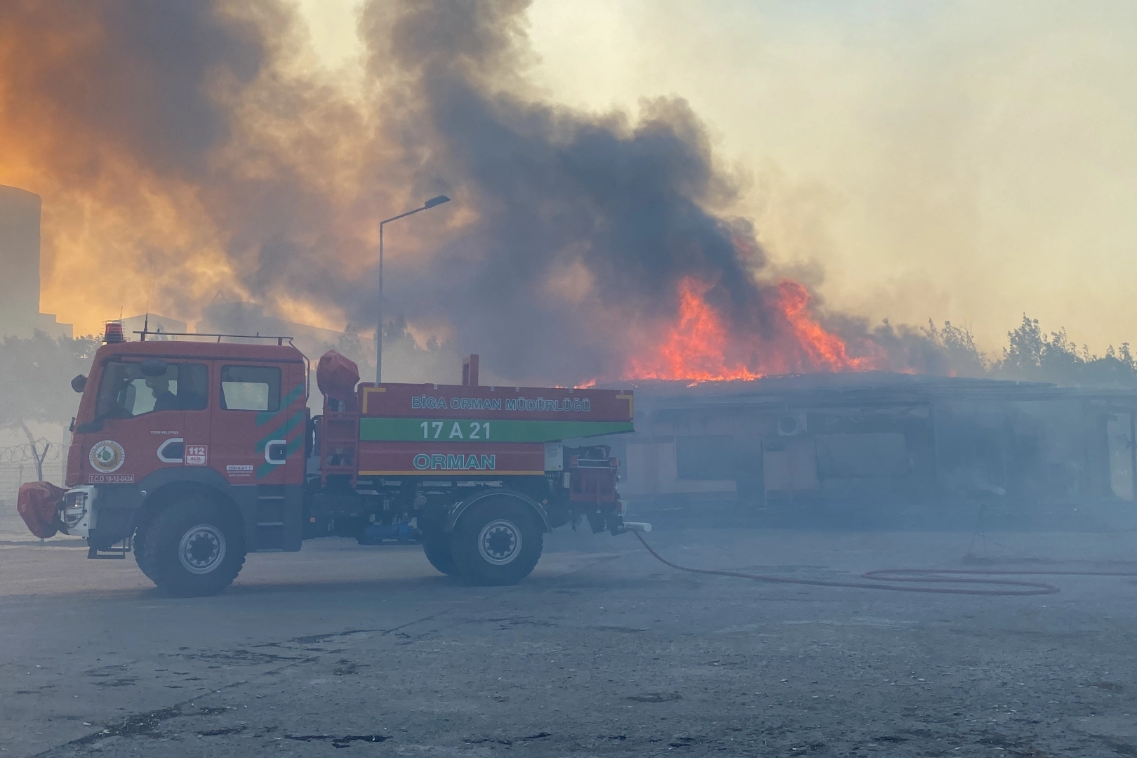 Ezine ilçesinde tarım arazisinde çıkan ve ormanlık alana sıçrayan yangında alevler, Akçansa Çimento Fabrikası'nın liman tesislerine kadar ulaştı. Fabrikanın liman tesisleri girişindeki bir bölümü alevler içerisinde kalırken, yangına havadan ve karadan müdahale devam ediyor.