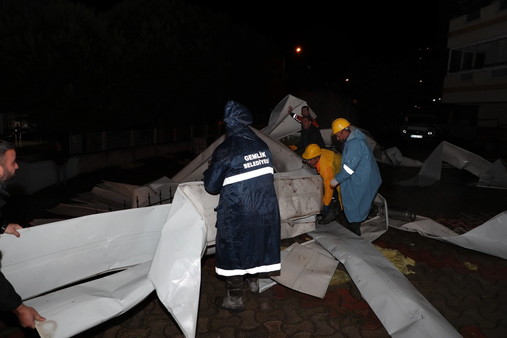 Okulun çatısından kopan metal parçalar kamyonlara yüklenerek bölgeden uzaklaştırıldı. Çatı uçmasının meydana geldiği okulu Gemlik Kaymakamı Hasan Göç, Belediye Başkan Vekili Galip Gür, Belediye Başkan Yardımcıları Zeynep Akış Serintürk ve Aksel Tümer ziyaret ederek yetkililerden durum hakkında bilgi aldı.