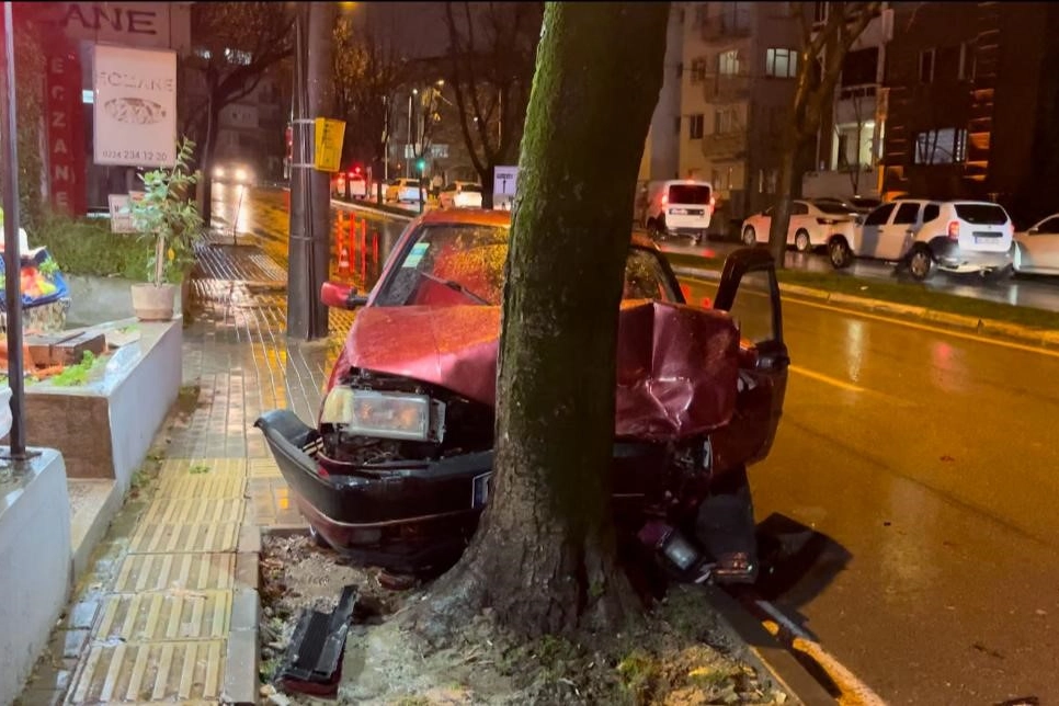 Yol kenarındaki ağaca çarparak duran otomobilde sürücünün fenalık geçirdiğini gören çevredekiler durumu 112 Ekiplerine bildirdi. İhbar üzerine olay yerine sağlık ve polis ekibi sevk edildi. Sağlık ekiplerince kalp krizi geçirdiği belirlenen sürücü ve yanında bulunan 2 kişi ambulans ile Çekirge Devlet Hastanesine sevk edilirken, polis kazayla ilgili tahkikat başlattı. Kaza anı ise bir işyerine ait güvenlik kamerasına saniye saniye yansıdı.