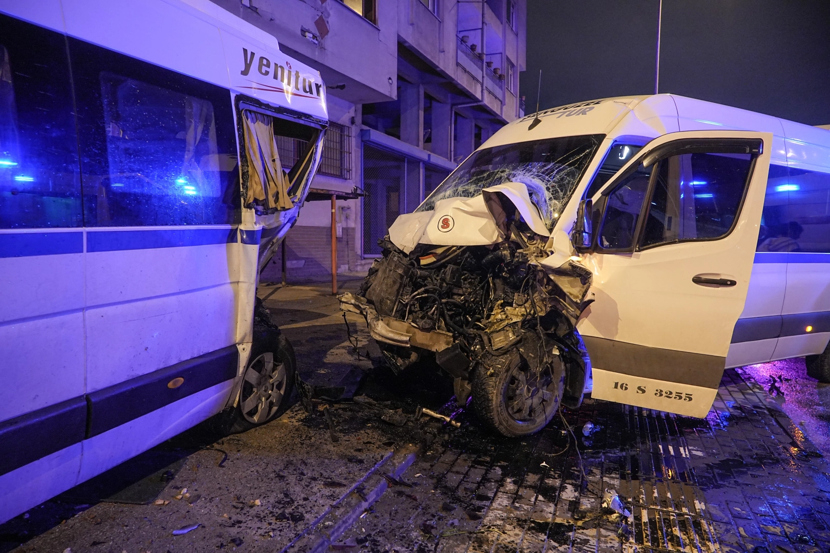 Bursa'nın Yıldırım ilçesinde 2 servis minibüsü, kamyonet ve hafif ticari aracın karıştığı kazada 3 kişi yaralandı. Kaza, Ankara Yolu Caddesi Hacivat-Esenevler Metro İstasyonu yanında meydana geldi. D.K. idaresindeki 16 S 3255 plakalı servis, aynı istikamette seyir halinde olan B.G idaresindeki 06 HNJ 26 plakalı kamyonet ile çarpıştı. Çarpışmanın etkisiyle 16 S 3255 plakalı servis, önce yol kenarında duran 16 BKJ 708 plakalı hafif ticari araca, ardından kaldırımda park halindeki 16 S 3222 plakalı servise; 06 HNJ 26 plakalı kamyonet ise metro alt geçidine çarptı.