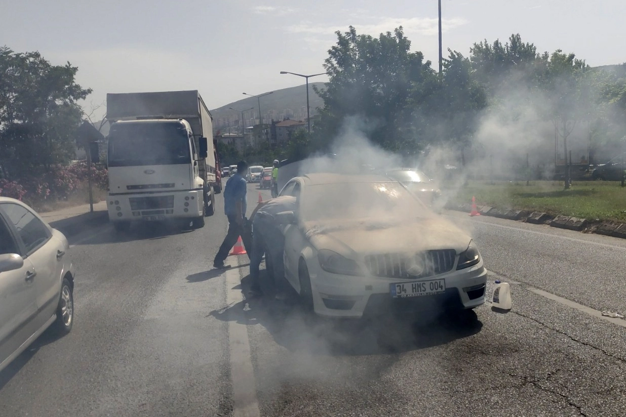 Seyir halinde olan lüks otomobilin motor bölümünden dumanlar yükselmeye başladı. Araçtan dumanlar çıktığını gören sürücü, trafik lambalarında otomobilden indi. Çevrede bulunan vatandaşlar yangın tüpleri ile müdahale etti. İhbar üzerine olay yerine itfaiye ekipleri sevk edildi. Yangını itfaiye ekiplerinin müdahalesi ile kısa sürede kontrol altına alındı. Araç sürücüsü Mehmet Kaya, aracın elektrik aksamı için 45 bin TL masraf yaptığını İstanbul’a dönerken aracın yandığını ifade etti. Olayda otomobil büyük çapta maddi hasar meydana gelirken, polis ekipleri olayla ilgili soruşturma başlattı.