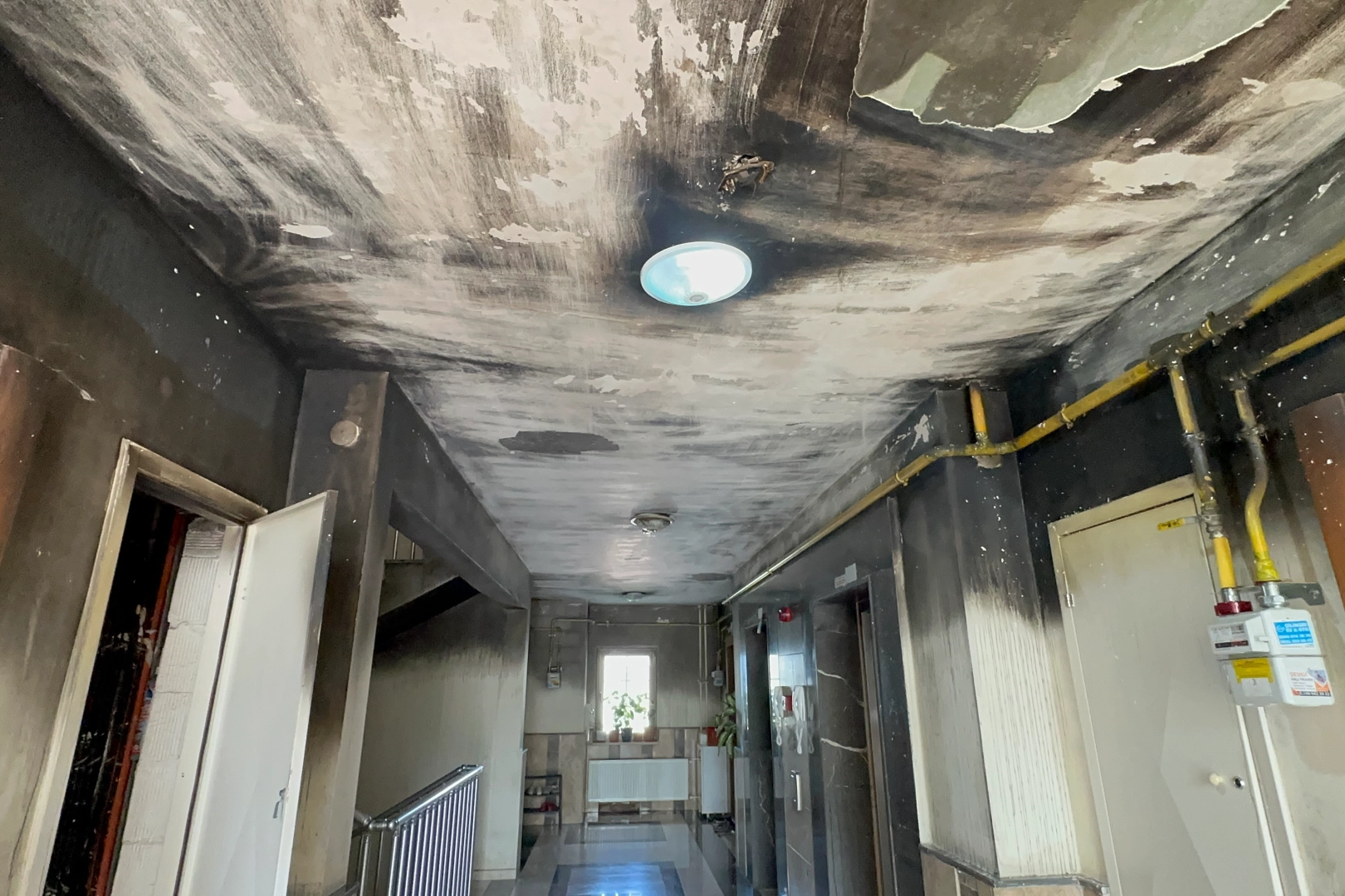 Eşiyle kendisinin kalp pili olduğunu ve canlarını zor kurtardığını söyleyen üst komşu Süleyman Hancıoğlu, "Gece 2-3 sıralarında gürültüye uyandık. Ayrılmak istemiş eşi, kocası ayrılmak istememiş. Evi yakmış ve kaçıyor. Dumanlar çıkınca çıkamadık bizde. Hanımında benim kalp pili var. Bir türlü dışarı çıkamadık. Herkes uyku sersemi olduğu için kimse ne yapacağını bilmiyor. Bütün bina duman içerisinde kaldı. Bina oturulacak gibi değil. Zehirleniyorduk. En çok zararı da ben gördüm" dedi.
