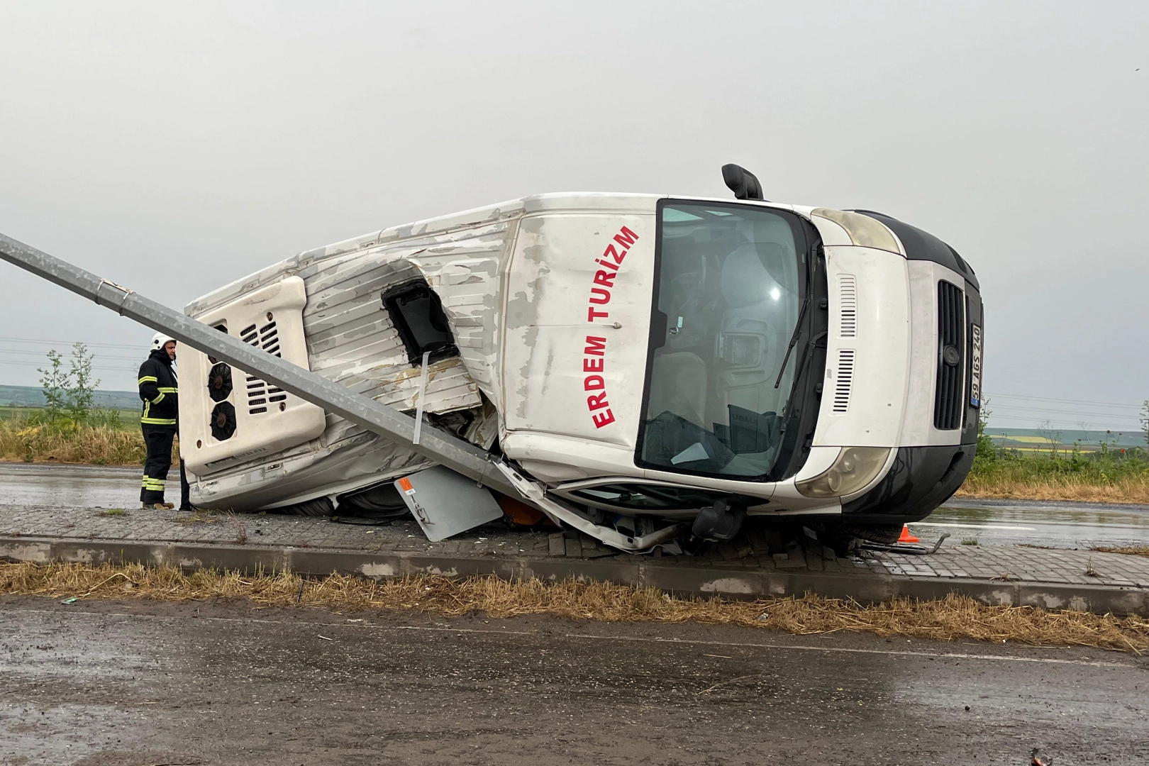 Kaza, sabah saatlerinde Muratlı’nın İstiklal-Kurtpınar OSB Mah.’de meydana geldi. İddiaya göre, Lüleburgaz istikametinden Süleymanpaşa yönüne doğru seyir halindeki M.B. sevk ve idaresindeki 59 AGS 240 plakalı fabrika servis aracı, Muratlı’da aracın lastiğinin patlaması sonucu yoldan çıkarak elektrik direğine çarparak devrildi. Kazada sürücü M.B. ile araçtaki 6 işçi yaralandı. İhbar üzerine bölgeye 5 ambulans ve itfaiye aracı sevk edildi.