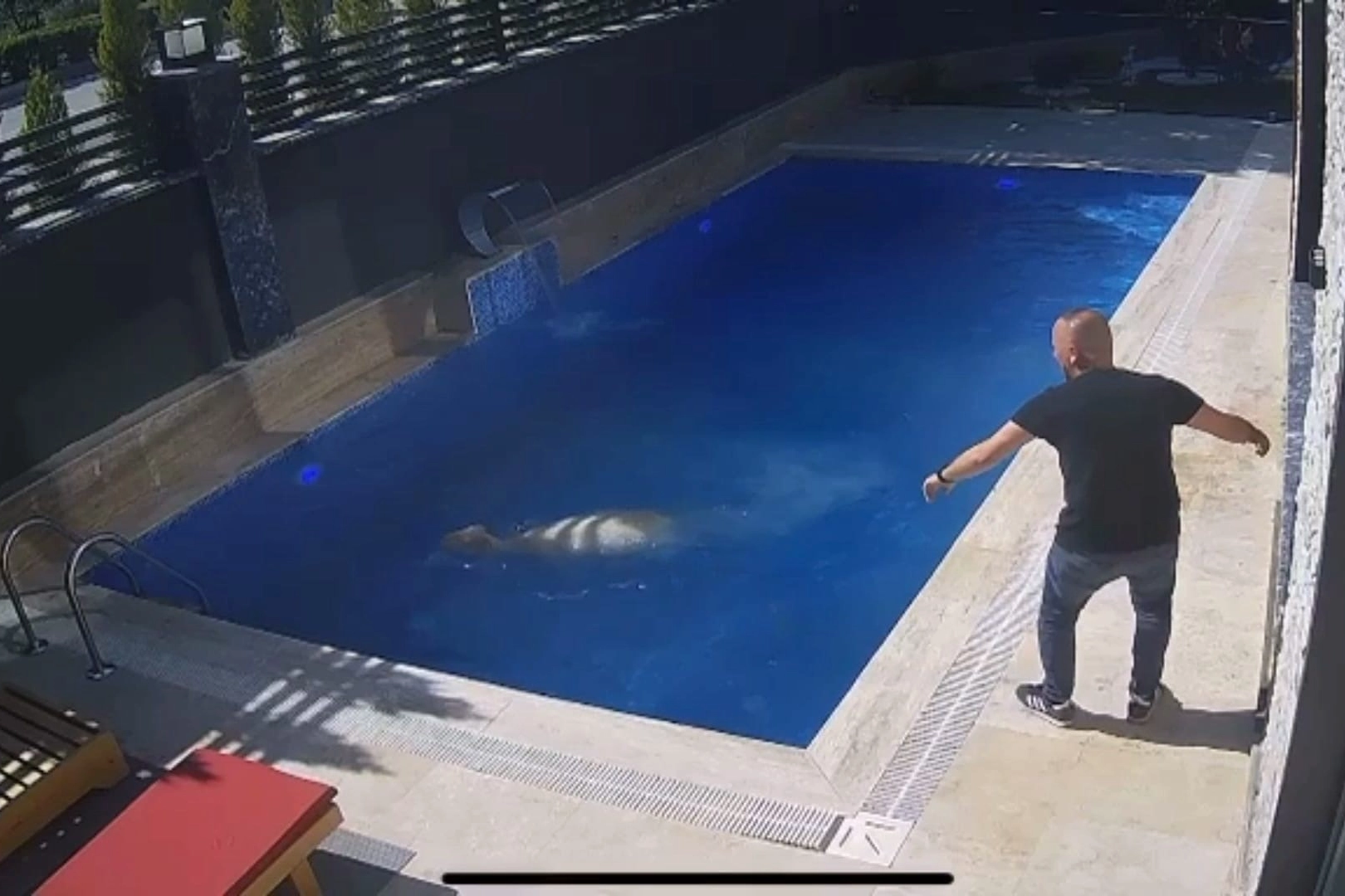 Olay, İnegöl'ün Kemalpaşa Mahallesi'nde meydana geldi. Samet Kasap, kurban için aldığı koçu kesmek için hazırlamaya başladı. O sırada kurtulan koç, kaçmaya başladı. Bir villanın bahçesine giren koç, havuza atlayarak yüzmeye başladı. Sedat Kasap, havuza atlayıp kısa süreli yüzdükten sonra havuz kenarına gelen koçu, eliyle dışarı çıkarıp yakaladı.