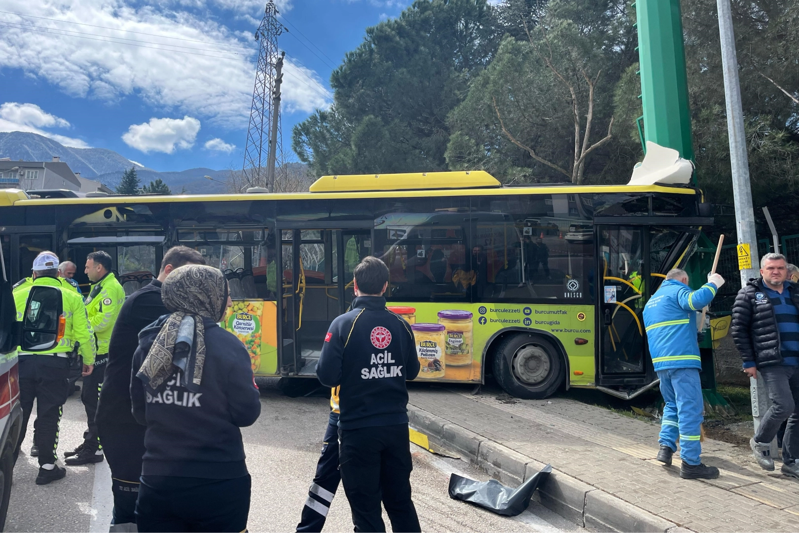 Bursa'da merkez Yıldırım ilçesi Siteler Mahallesi'nde freni patlayan bir belediye otobüsü önce park halindeki araca sonra da karşı yöne geçip bir direğe çarptı.