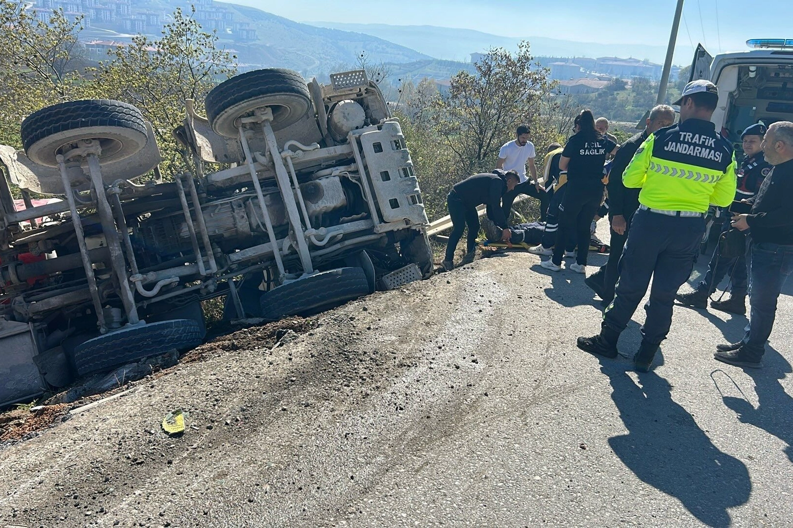 Bursa'nın İnegöl ilçesinde meydana gelen kazada kontrolden çıkan beton mikseri şarampole yuvarlandı. Kaza İnegöl'ün kırsal Karalar mahallesinde meydana geldi. Sürücü Gökmen Ç. (45) Yönetimindeki 16 SJZ 38 plakalı beton mikseri, sürücüsünün kontrolünden çıkarak şarampole yuvarlandı. Kaza sonucu sürücü yaralandı.