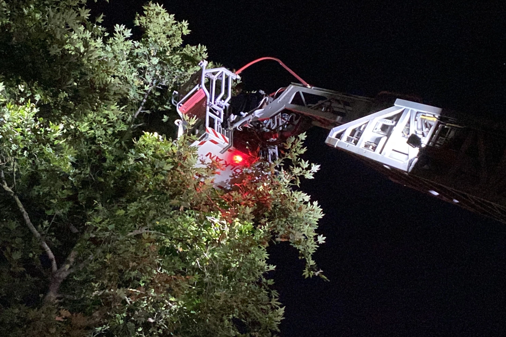 İlginç olay, saat 21.00 sıralarında İnegöl ilçesindeki Hikmet Şahin Kültür Parkı'nda meydana geldi. Çocuklar parkta oyun oynadıkları sırada top ağacın dalları üzerinde kaldı. Çocuklar ve aileleri topu bir türlü indiremedi. Yoldan geçen bir vatandaş, çocuklara yardım etmek istedi. Şahıs, aracındaki keseri ağaca fırlatarak topu indirmeye çalıştı. Ancak keser ağacın gövdesine saplandı. Vatandaşlar, keserin düşmesi ile yaşanabilecek bir tehlikenin önüne geçmek için itfaiyeden yardım istedi. Merdivenli araçla olay yerine gelen ekipler, ağaçtaki keseri ve topu alarak aşağı indirdi.