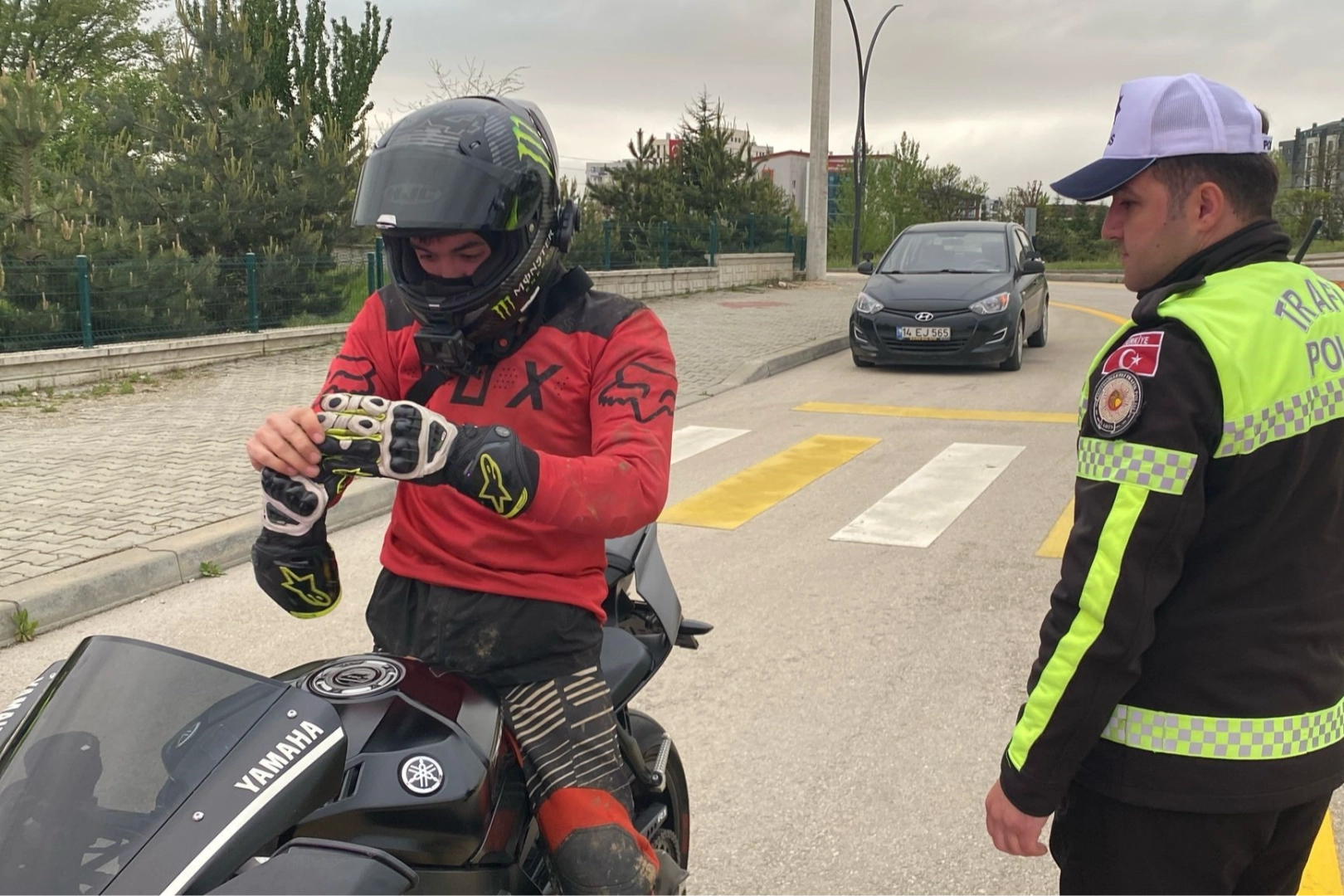 Bolu İl Emniyet Müdürlüğü Trafik Tescil ve Denetleme Şube Müdürlüğü ekipleri, trafiği tehlikeye düşüren sürücülere yönelik çalışmalarını sürdürüyor. Sosyal medya hesabında motosikletiyle ön kaldırarak, 236 kilometre tek teker hızla gezdiği görüntüleri paylaşan 14 BT 272 plakalı motosikletin sürücüsü Batuhan T., akşam saatlerinde trafik polisinin takibi sonucu Kılıçarslan Mahallesi’nde yakalandı. Sürücünün ehliyetine ve motoruna ’sağlık durumunun yerinde olup olmadığı tespiti’ gerekçesiyle el konuldu. Ayrıca yeniden ehliyetini almak için psikoloğa başvurmaları gerektiği öğrenildi. Motosikleti, oto kurtarıcı yardımıyla yediemine çekilen sürücüye tehlikeli araç kullanmaktan ise toplamda 11 bin 434 lira ceza kesildi.