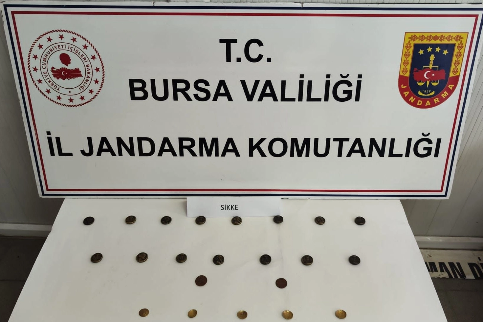 Bursa İl Jandarma Komutanlığı İstihbarat Şube Müdürlüğü ile İnegöl İlçe Jandarma Komutanlığı ekipleri, bir şahsın İstanbul'dan İnegöl'e tarihi eser satmak amacıyla geleceğini tespit etti. Ekipler, C.Ç. isimli şüpheliyi ilçe merkezinde yapılan operasyonla gözaltına aldı. Şüphelinin üzerinde yapılan aramada, Bizans ve Roma dönemlerine ait 17 adet bronz ve 5 adet altın sikke ele geçirildi. Ele geçirilen eserlerin yasa dışı yollardan 100 bin dolara satılmak istendiği öğrenildi.