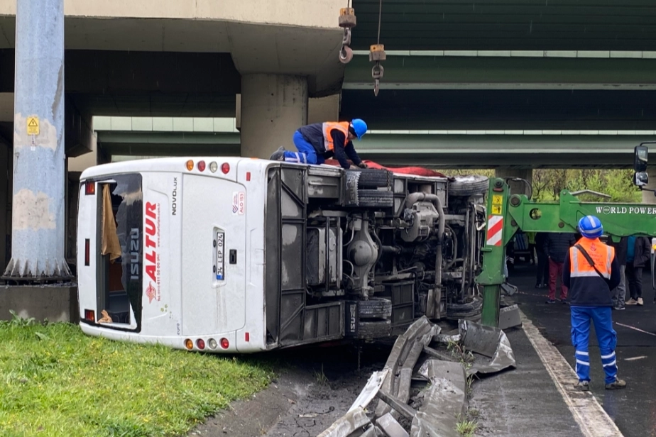 Edinilen bilgiye göre, İstanbul Havalimanı’nda görevli polisleri taşıyan 34 LEP 024 plakalı servis minibüsü Çobanşeşme Kavşağı Atatürk Havalimanı istikametinde yağmurun da etkisiyle kayganlaşan yolda kontrolden çıktı. Şoför Kübilay Açıkgöz’ün hakimiyetinden çıkan araç önce bariyerlere çarptı ardından devrildi. Mesailerinin bitmesinin ardından evlerine dönen polislerin yardımına meslektaşları yetişerek araçtan çıkardı. Minibüste bulunan 6 polis hafif şekilde yaralandı. Olay yerine sağlık, itfaiye ve çok sayıda polis ekipleri sevk edildi. Yaralılar tedbir amaçlı hastaneye kaldırıldı. Kaza nedeniyle trafik tek şeritten verildi. Devrilen minibüsün olay yerinden kaldırılması için çalışma başlatıldı. Öte yandan yaralıların sağlık durumlarının iyi olduğu öğrenildi.