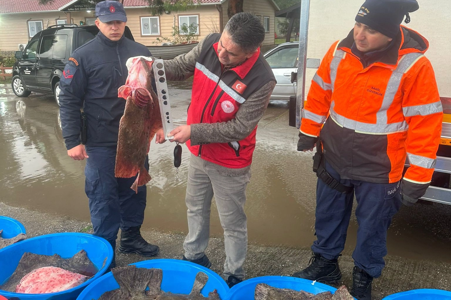 Sahil Güvenlik Komutanlığı, Kocaeli Tarım ve Orman İl Müdürlüğü ile Kandıra İlçe Tarım ve Orman Müdürlüğü'nün, kaçak avcılıkla mücadele çalışmaları kapsamında Kefken Balıkçı Barınağı'nda denetim yapıldı. Ekiplerin koordineli çalışması sonucu, yasa dışı yollarla avlandığı belirlenen, ortalama 7,5 kilogram ağırlığında yaklaşık 500 kalkan balığına el konuldu. Kaçak avcılık yaptığı tespit edilen kişilere idari yaptırım uygulandı.