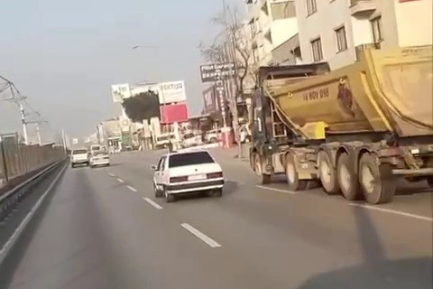 Dakikalarca makas atarak ilerleyen kamyon adeta kazaya davetiye çıkardı. Tehlikeli anlar, saniye saniye amatör kamera ile kaydedildi.