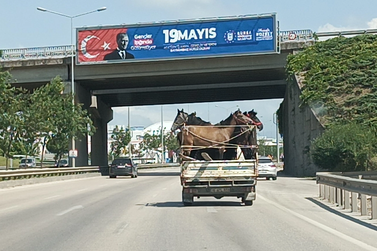 Edinilen bilgiye göre Mustafakemalpaşa ilçesi istikametinden üzerinde 5 adet at yüklü kasası açık kamyonet kilometrelerce yolu üzerinde branda bile olmadan gelip Bursa şehir merkezine girdi. Şehrin İzmir yolu girişindeki kontrol noktasından da çevrilmeden geçen üzeri at yüklü kamyonet hiç bir şeye aldırış etmeden ilerleyişine devam etti. Özlüce ve Küçüksanayi yönünde ilerleyip Acemlere gelmeden Mudanya yolu istikametine dönen kamyonetin üzerindeki 5 adet atla nereye ve ne için gittiği merak konusu oldu. Şiddetli rüzgarda zaman zaman huysuzlanan atlar hareket halindeki kamyonetin zaman zaman sağa sola eğilmesine sebep oldu. O anlara şahit olan trafikteki diğer sürücüler cep telefonlarıyla hareket halindeki at yüklü kamyonetten görüntü aldı.