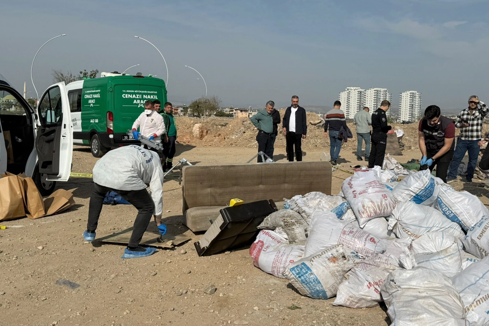 Olay, bugün ilçeye bağlı Fevzi Çakmak Mahallesi İbni Sina Caddesi'ndeki molozların döküldüğü bir alanda ortaya çıktı. Alınan bilgiye göre, molozların döküldüğü alanda bugün bırakıldığı değerlendirilen çekyatı fark eden bir kişi, almak için kontrol etti. Altındaki halıyı görüp açan şahıs cesetle karşılanınca durumu polise bildirdi. Olay yerine gelen polis ekipleri çekyat içindeki şahsın bıçaklanarak öldürüldüğünü daha sonra tuzlanıp halıyla sarılıp iple bağlandığını belirledi.