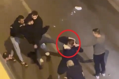 Olay, merkez Osmangazi ilçesi Kuruçeşme Mahallesi üzerinde meydana geldi. İddiaya göre alacak verecek meselesi nedeniyle cadde üzerinde bir araya gelen taraflar sözlü tartışmaya başladı. Tartışma kısa sürede büyüyerek yeri kavgaya bıraktı. Taraflardan biri kavga ettiği kişilerin suratına uçan tekme atarken, diğeri de elindeki sopayla yere düşün kişinin başına fırlattı. O anlar kameraya yansırken, kavga eden şahısları polis güçlükle ayırdı.