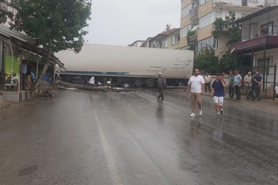 İznik ilçesinde ise, yağmur sebebiyle kayganlaşan yolda direksiyon hakimiyetini kaybeden 42 BBH 13 plakalı tır, yan döndü. Yolu boydan boya kaplayan tır elektrik direğini devirirken, yaralanan olmadı. Vatandaşların tepki göstermesi sonucu, tır sürücüsü olay yerinden kaçtı. Yol kenarındaki ev ve işyerlerinin önünde bulunan saçakları yıkıp geçen tırın, yerinden kaldırılması için polis ekipleri seferber oldu.