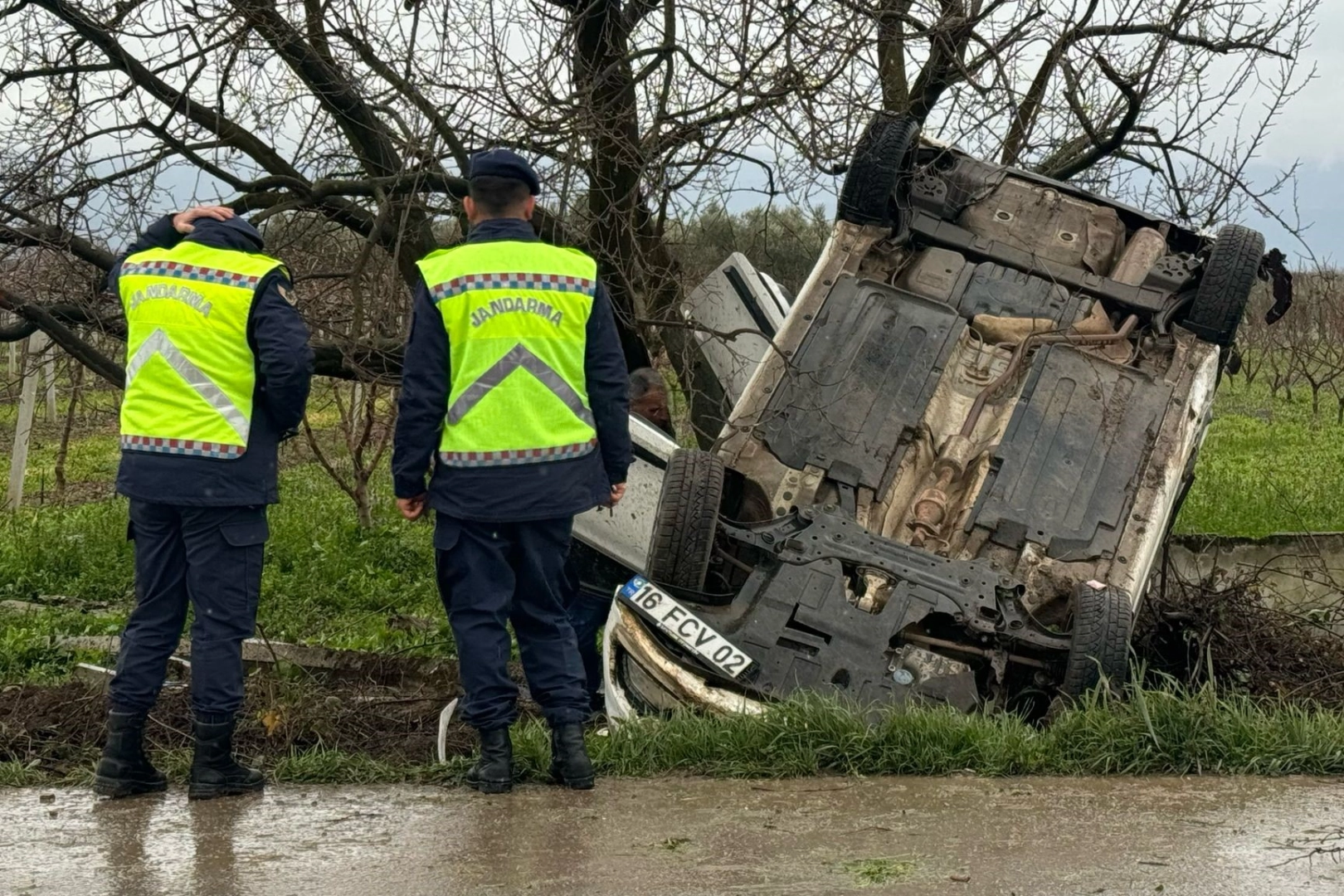 Kaza, İznik-Orhangazi yolu Çakırca köprüsünde gerçekleşti. Köprüyü geçtikten sonra havanın da yağışlı olması sebebiyle direksiyon hakimiyetini kaybeden sürücü aracıyla takla attı. Su kanallarına çarpan sürücü kazanın etkisiyle birlikte ağaca asılı bir şekilde zor durabildi. Sürücü hafif yaralanırken olay yerine gelen 112 Acil Servis ekiplerince yapılan ilk müdahalenin ardından İznik Devlet Hastanesine kaldırıldı. Jandarma ekipleri kazayla ilgili soruşturma başlattı.