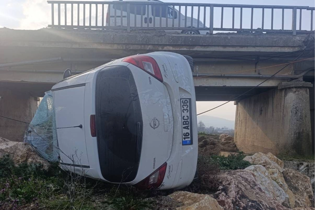 Bursa’nın kırsal Kurşunlu Mahallesi yolu üzerinde seyir halinde olan 23 yaşındaki Buse D. idaresindeki hafif ticari araç, sürücüsünün direksiyon hakimiyetini kaybetmesi sonucu köprü korkuluklarını parçalayarak dere yatağına uçtu. Kazada hafif yaralanan sürücü, olay yerindeki ilk müdahalenin ardından hastaneye kaldırılarak tedavi altına alındı.