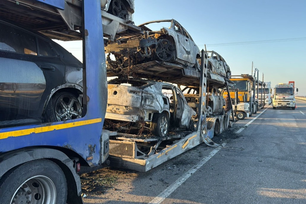 Olay, Emirdağ ilçe Beyköy yakınlarında meydana geldi. Edinilen bilgilere göre, sürücüsünün ismi henüz belirlenemeyen 41 L 1709 plakalı tırın lastiklerinde henüz belirlenemeyen bir sebepten yangın çıktı. Kısa sürede büyüyen yangın dorsede taşıdığı su ve binek araçları sıçradı. Olayda sıfır kilometre BMW marka 7 otomobil yanarak kullanılamaz hale geldi. Ölen ya da yaralananın olmadığı yangında milyonluk hasar oluştu. Yangın sonrası bölgeye gelen vinç yardımıyla hurdaya çıkan araçlar dorseden indirilerek bir başka tıra yüklendi. Kaza sonrası Jandarma tarafından inceleme başlatıldı.