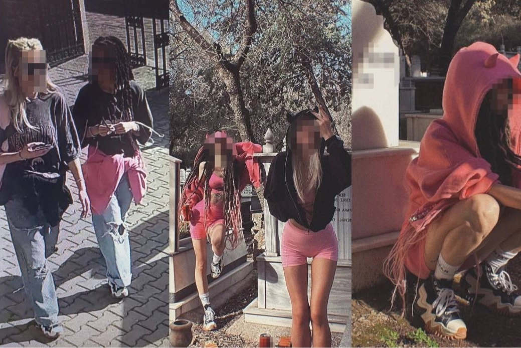 Olay güvenlik kameralarına da yansıdı. Görüntülerde, genç kızların mezarlığa günlük kıyafetlerle girdiği görülürken, sosyal medyada paylaşılan videoda ise kızların üzerlerini içeri girdikten sonra değiştikleri kıyafetlerle mezar taşlarının üzerine oturarak iskambil oynadıkları, kola içtikleri ve mezar başında üstlerini değiştirdikleri anlar yer aldı.