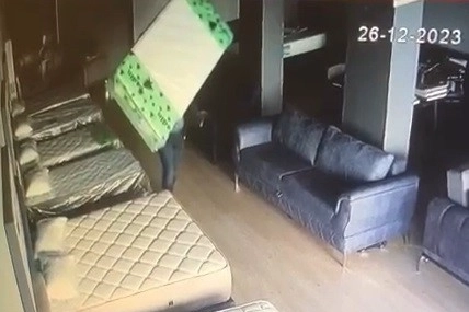 O anlar iş yerinin kamerasına yansırken, hırsızlık görüntüleri 'pes' dedirtti. Merkez, Nilüfer ilçesi Tuna Caddesi üzerinde gündüz vakti bir mobilya dükkanına müşteri gibi giren şüpheli içerideki yatağı gözüne kestirdi. Bir süre çevreyi kontrol eden şüpheli kimse olmayınca omzuna aldığı yatakla dışarı çıkıp kayıplara karıştı. Şüphelinin kendi dükkanı gibi rahat tavırları dikkat çekerken, pes dedirten hırsızlık anı iş yerinde bulunan güvenlik kamerasına saniye saniye yansıdı. Polis ekipleri ise olayla ilgili soruşturma başlattı.