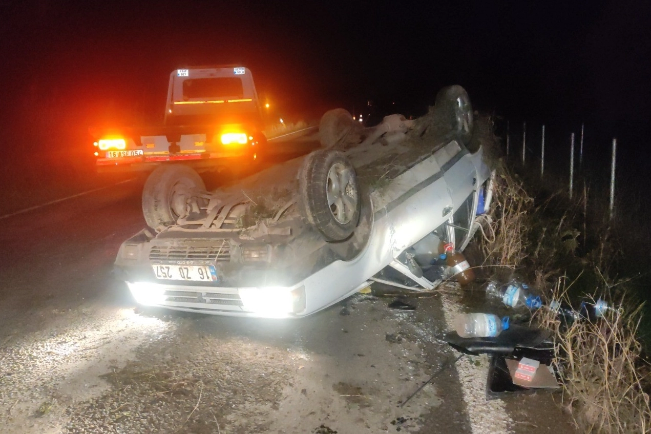 Bursa'nın Orhangazi ilçesine bağlı Akharem Kavşağı yakınlarında meydana gelen trafik kazasında bir otomobil seyir halindeyken kontrolden çıktı. Savrulan otomobil takla atıp ters durdu. Kazada otomobilde bulunan 2 kişi yaralandı.