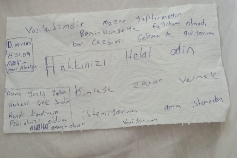 Kumluca ilçesinde yaşayan Halil İbrahim Öksüz (22), 22 Eylül Pazar günü WhatsApp üzerinden kurduğu grupta yakınlarına veda edip, bir peçetenin üzerine doğum tarihini, ölüm tarihi olarak kaybolduğu günü ve “Vasiyetimdir, mezar taşımı yaptırmayın” notunu yazarak ortadan kaybolmuştu.