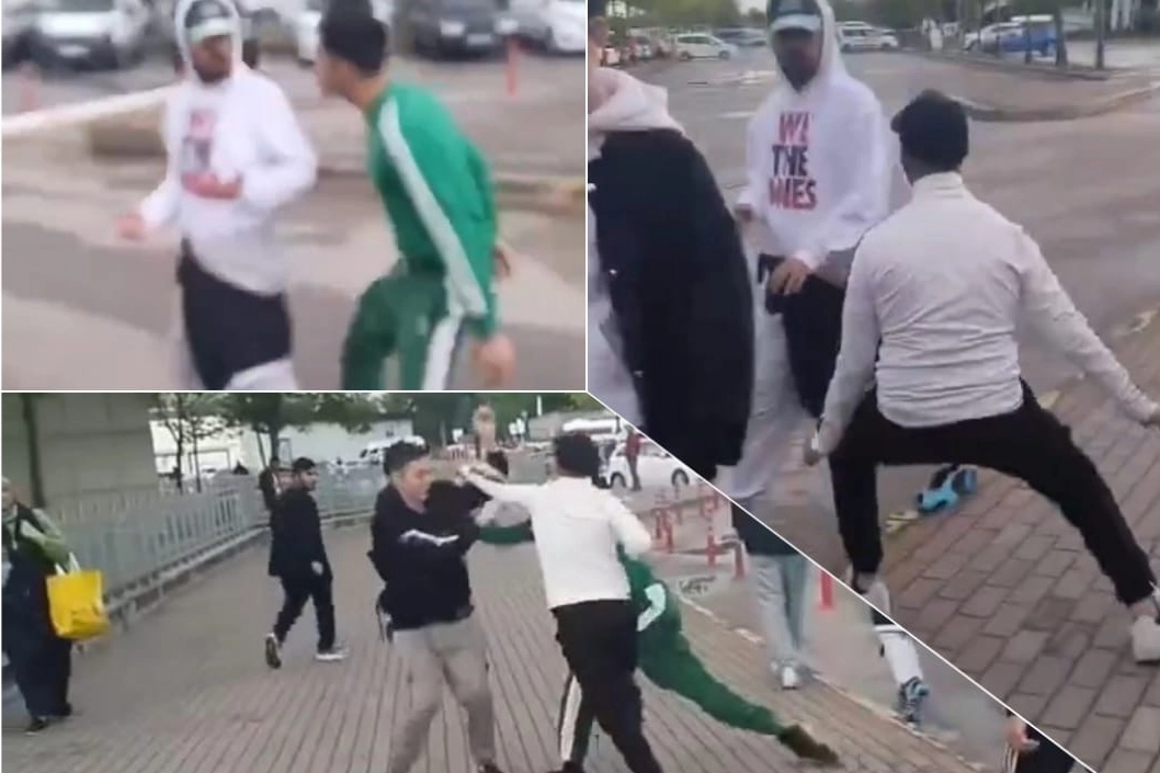 Bu anlar şahısların yanında bulunan kişi tarafından saniye saniye kayda alındı. İlginç görüntüde, şahısların korkuttukları gençlerden birine saldırdıkları, bu sırada yolda yürüyen bir kadın ve yanındaki çocuğun da panikle şahısların yanından ayrılmaya çalıştığı anlar yer aldı.