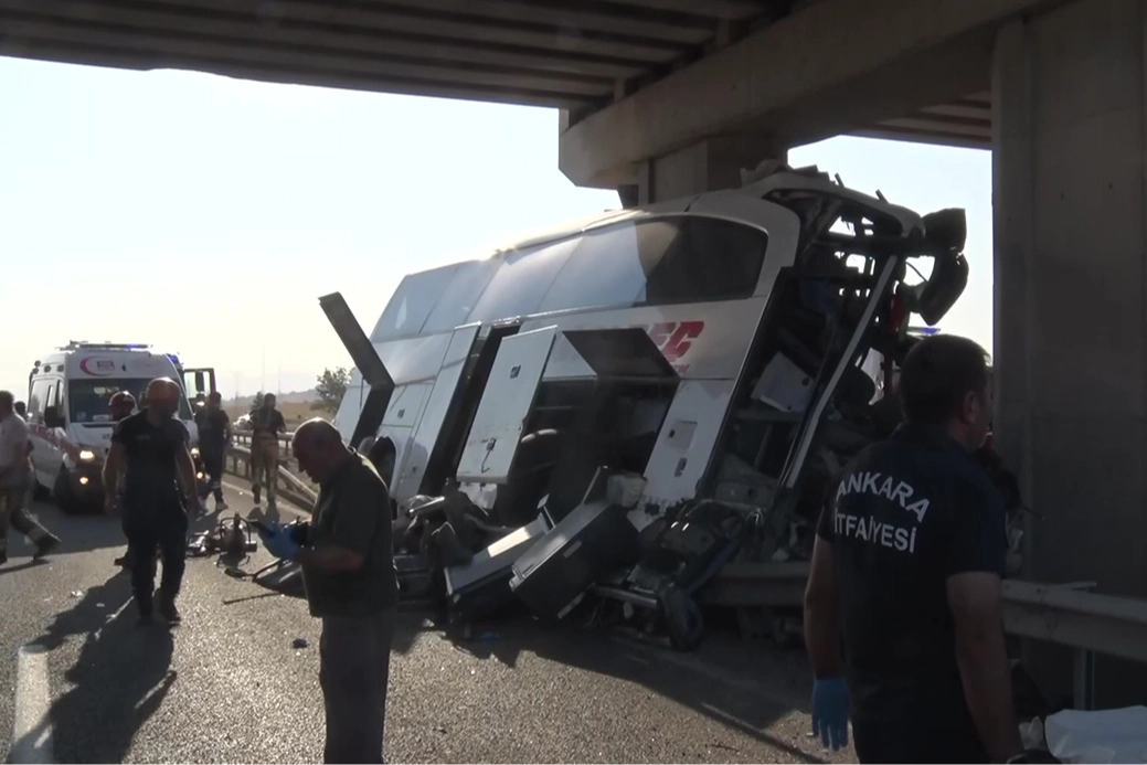 Kaza, saat 05.00 sıralarında Eskişehir yönüne giden otobüsün köprünün ayağına saplanması sonucu meydana geldi. Bölgeye çok sayıda itfaiye, arama kurtarma ve sağlık ekibi sevk edildi.