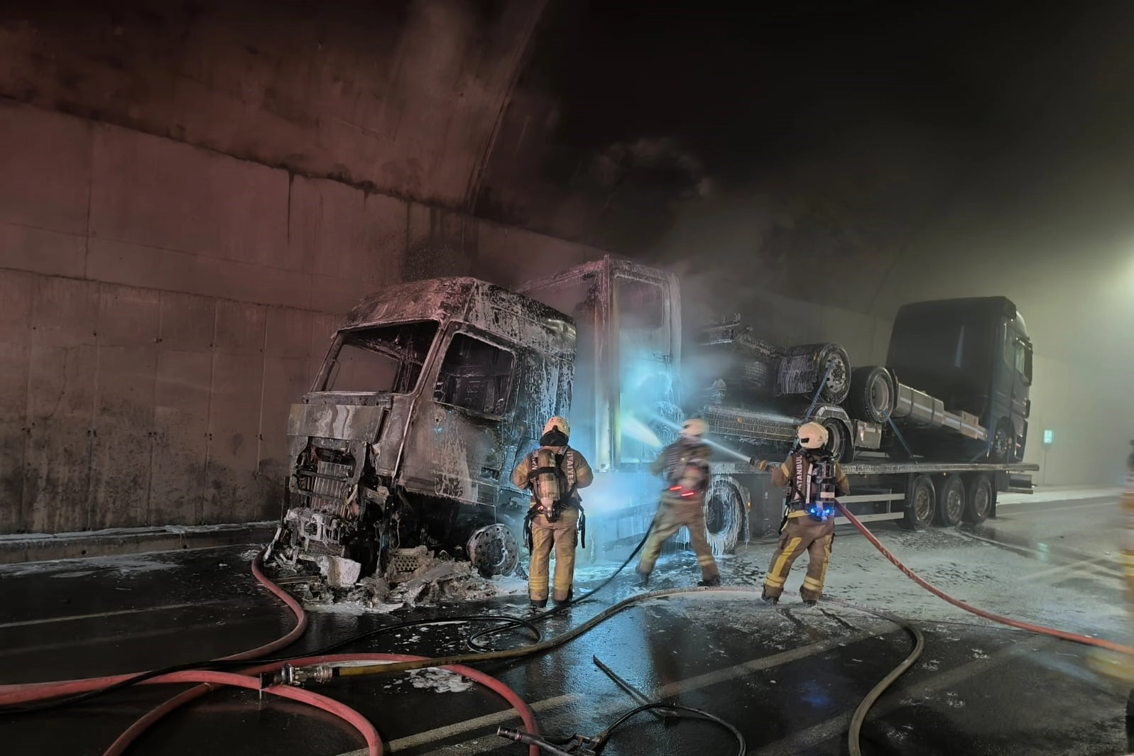 Öte yandan, yangın sırasında yaşanan patlama, tünel içindeki diğer sürücülerin cep telefonu kamerasına yansıdı. Patlamanın etkisiyle kısa süreli panik yaşanırken, tünelde yoğun trafik oluştu. Yangın nedeniyle yaralanan olmazken, alev alev yanan tır kullanılamaz hale geldi. Olayla ilgili soruşturma başlatıldı.