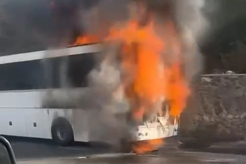 Olay, 15.30 sıralarında Bursa-Gemlik yolu Dürdane rampası üzerinde meydana geldi. Edinilen bilgiye göre, yolcu otobüsü motor kısmından yaptığı arıza sonucu seyir halindeyken alev almaya başladı. Otobüs şoförü, aracın alev aldığını görünce hemen emniyet şeridine yanaştı. Kısa sürede büyüyen alevler otobüsü sararken, araçtakiler 112 ekiplerine ulaştı. İhbar üzerine olay yerine sevk edilen itfaiye ekipleri alevleri kısa sürede söndürürken, otobüs kullanılamaz hale geldi. Olayla ilgili tahkikat başlatıldı.