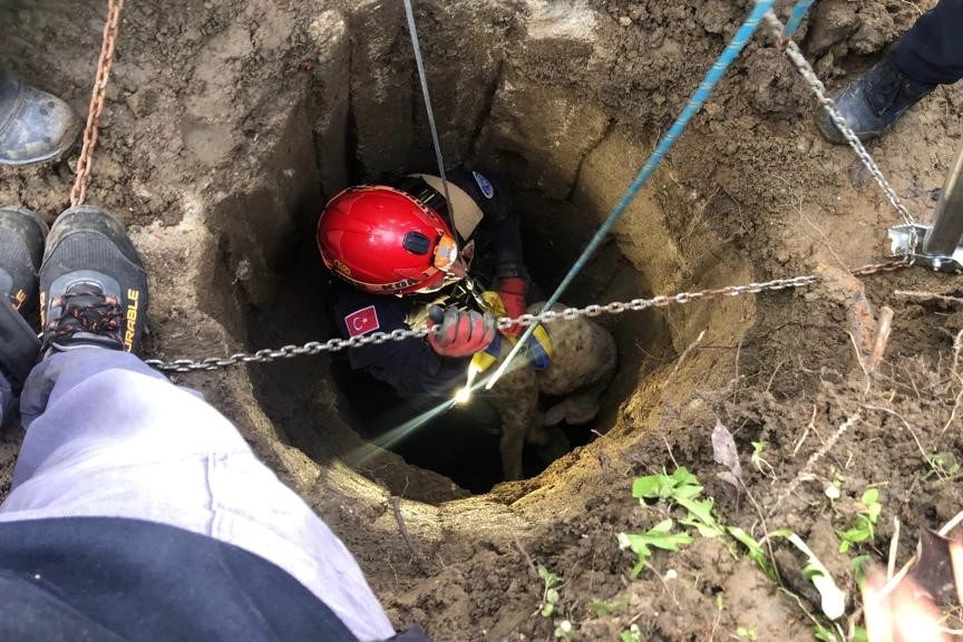 Olay, saat 14.00 sıralarında İsaören Mahallesi Kümeevler mevkiinde meydana geldi. 100 adet küçükbaş hayvanını ağıla götüren Ramazan Çakar, hayvanları arasından birinin eksik olduğunu fark etti. Çevreyi arayan Çakar, 4 gün sonra su kuyusunun yanına gelip hayvana seslendiği sırada, kayıp olan hayvanının sesini duydu. Çakar, durumu itfaiyeye bildirdi. Olay yerine gelen itfaiye ekipleri, 3 saat süren yoğun çalışma sonucu küçükbaş hayvanı canlı olarak kurtardı.